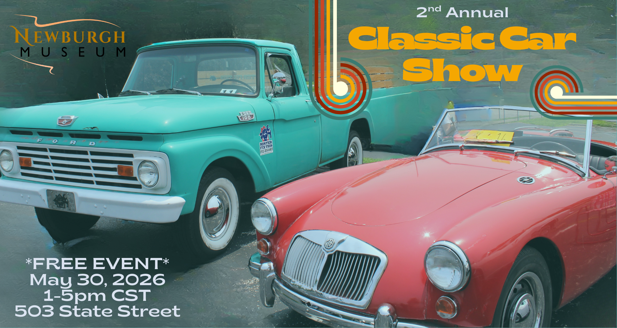 Time to show off those hot rods! Come support the Newburgh Museum and enter your classic car for a special award! Enjoy some delicious food trucks and music! (Accepting registrations from the 1940s – 1976!) Learn more and register your vehicle BELOW: