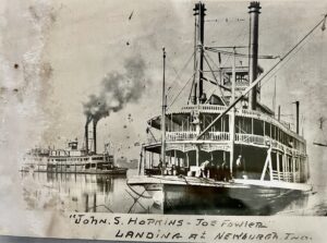 By the 1850s Newburgh was one of the largest riverports between Cincinnati and New Orleans, with warehouses lining both sides of Water Street. Steamboats such as these were crucial for transport of local products such as tobacco, grain, and pork.