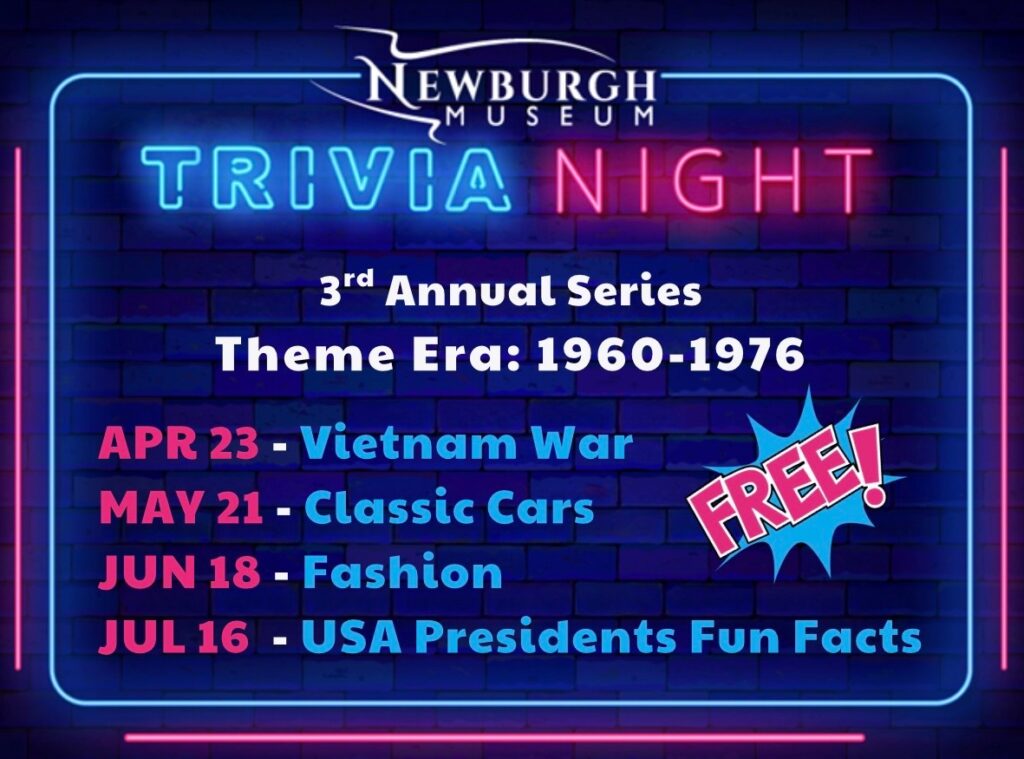 *April 23 will be at Archie & Clydes. All other events will be at the Newburgh Museum.